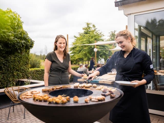 Ook de innerlijke mens mag niet vergeten worden! Daarom adviseren wij om een activiteit altijd te combineren met een hapje eten. Net zoals bij onze activiteiten hebben wij hier veel mogelijkheden in. Zo is het bijvoorbeeld mogelijk om gezellig te barbecueën, te genieten van een Brabants buffet of jezelf te laten verrassen met verschillende streetfoodbites.